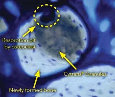 Cytrans® Granules has an unique balance of bone formation and bone replacement which helps to keep the volume of regenerated bone for a more predictable outcome. It has a proven track record of clinical success, is easy-to-handle and serves as an osseoconductive framework for new bone growth.
